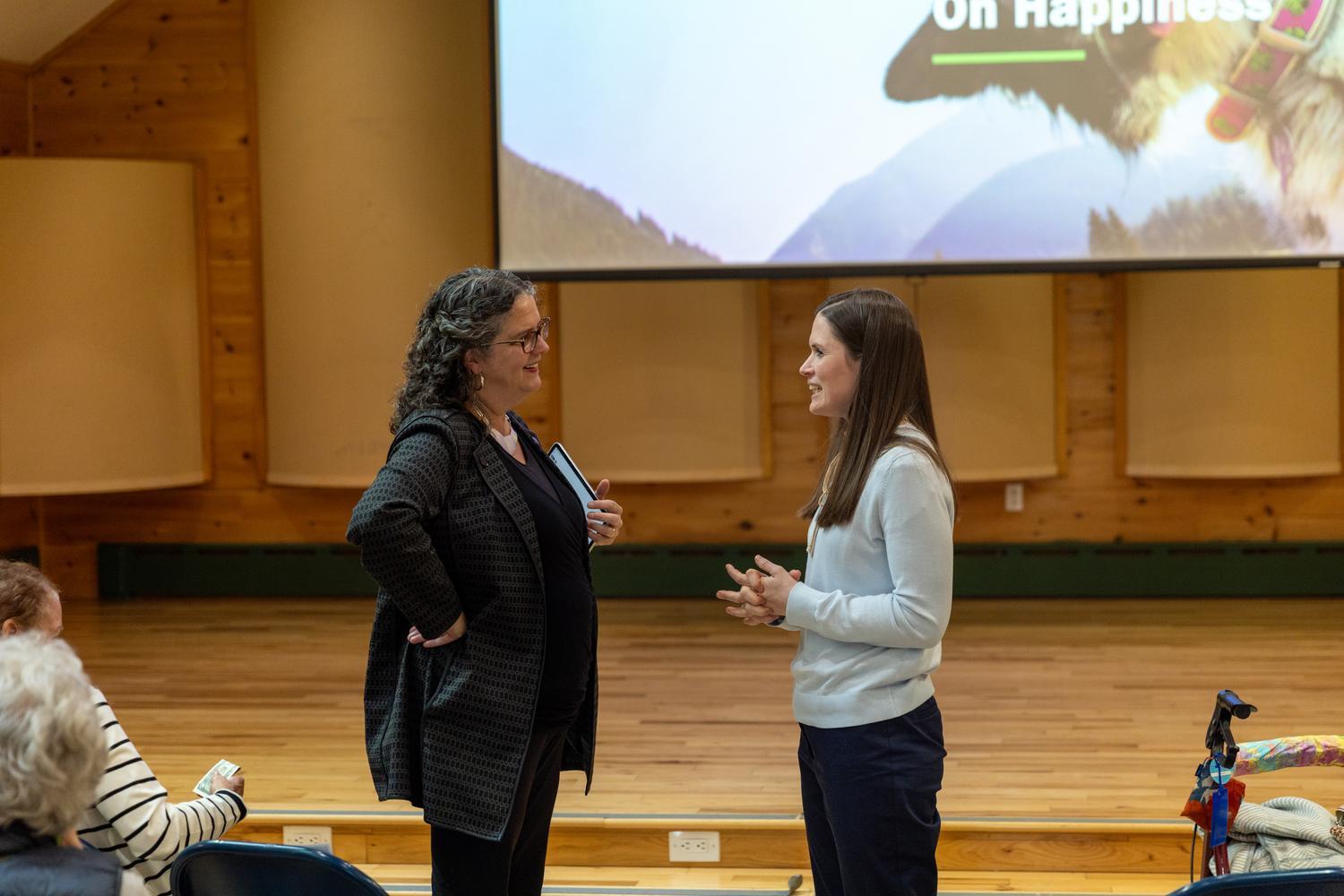 Guests enjoyed the first hour catching up over refreshments and relaxed conversation before settling in for an engaging talk with Greg Fahy, UMA associate professor of philosophy. Drawing from global perspectives and recent research, Fahy guided the group in exploring how happiness is understood and experienced around the world, and shared research on happiness-boosting (and blocking) factors to explore, embrace or avoid.