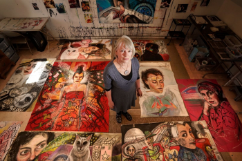 Maine artist Martha Miller collaborates with her daughter Lisbeth to make colorful, larger-than-life, mixed media paintings. Together, they tell the story of living with a traumatic brain injury.