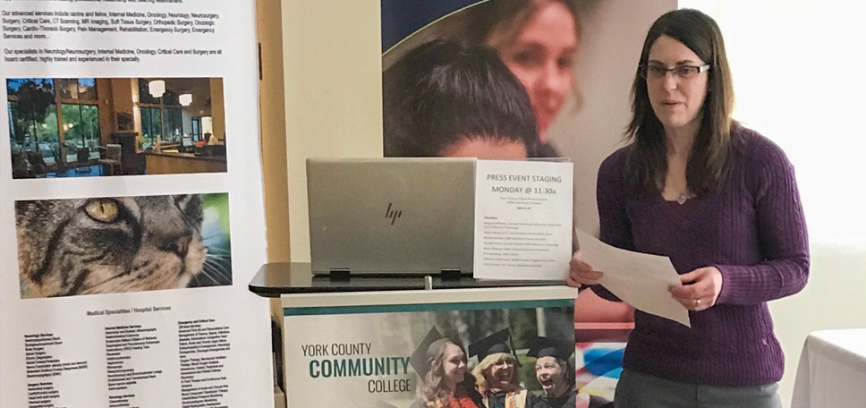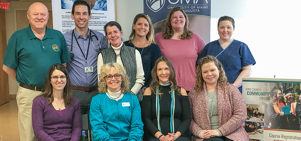The University of Maine at Augusta (UMA) and York County Community College (YCCC) announced an agreement that will facilitate YCCC students who receive a Veterinary Technology Associate’s Degree to transfer those credits towards a Veterinary Technology Baccalaureate Degree at UMA. An announcement event took place at Maine Veterinary Medical Center (MVMC), Scarborough.