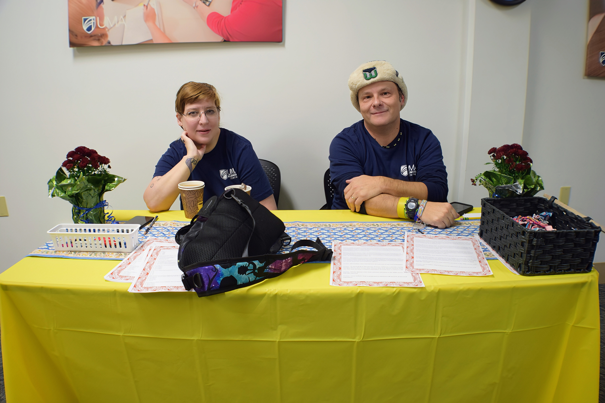 The UMA Ellsworth Center Student Association celebrated Hispanic Heritage month with a themed luncheon. President Cushman, community partners, Center staff and students enjoyed the celebration. The luncheon included tacos with an assortment of chicken, beef, vegetable toppings, rice, and beans as well as churros for dessert. Participants that completed a short Hispanic Heritage Trivia Quiz were able to choose a woven braided friendship bracelet. It was a great way for folks to come together, share a meal, and talk outside of the classroom.