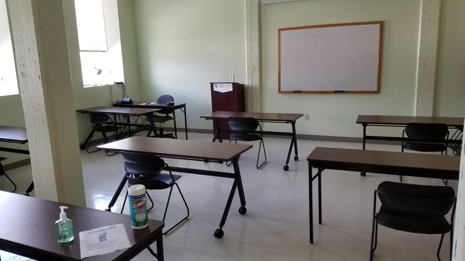 Classrooms and meeting spaces have been reconfigured to ensure six feet of social distancing. Anyone visiting the Center is strongly encouraged to make an appointment as they are also limiting the number of people in the Center at one time. Students wanting to use the computer lab are required to reserve lab time in advance. Finally, regular and thorough cleaning and disinfecting of all classrooms, meeting spaces, computers, and furniture is required.