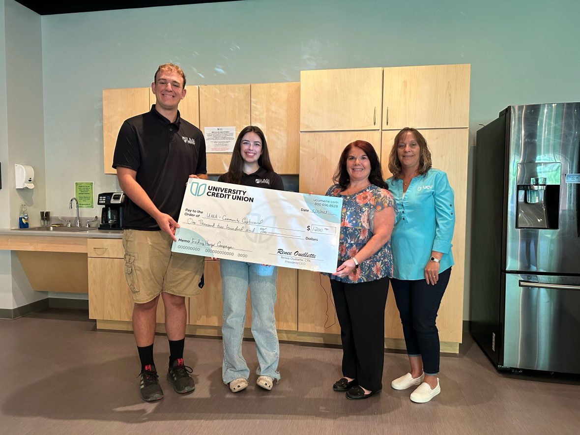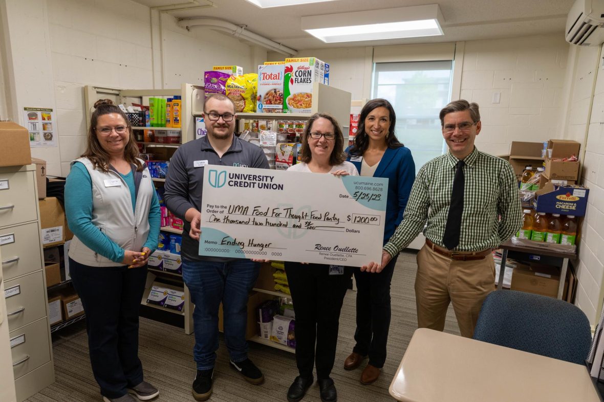 University Credit Union (UCU) presented checks to the University of Maine at Augusta (UMA) totaling $2,400 for its student-run and campus-sanctioned food pantries on its Augusta and Bangor campuses, respectively.