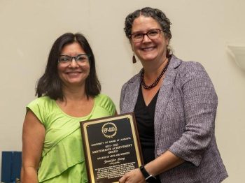 Two UMA adjunct faculty were also noted for their long-time service. Elizabeth “Betty” Adams teaches journalism and has taught for 77 semesters (78 starting this fall), making her the longest-serving part-time faculty member at UMA and in the entire University of Maine System. David G. Stetson teaches math and statistics and is beginning his 71st semester this fall. He and Betty are the only adjunct faculty at UMA to top the 70-semester mark. We are very proud of their long-time commitment.